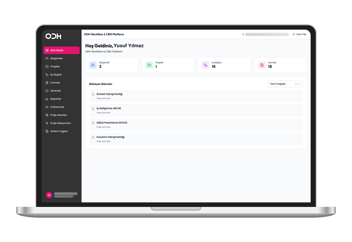 Geleneksel danışmanlıkta süreçler telefon trafikleriyle, unutulan e-postalarla ilerler. ODH Paneli ise süreci dijital bir iş akışına dönüştürür.